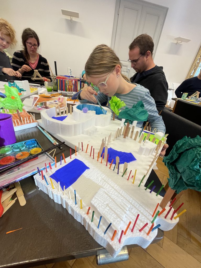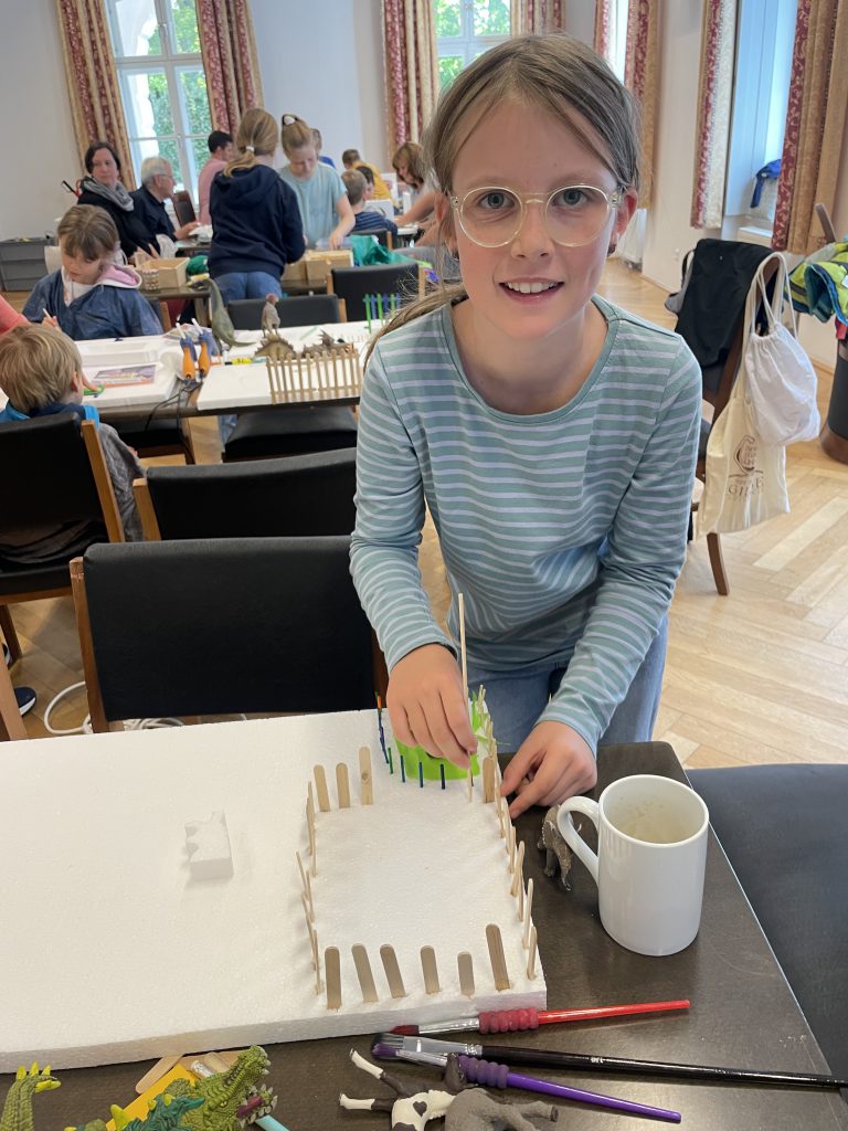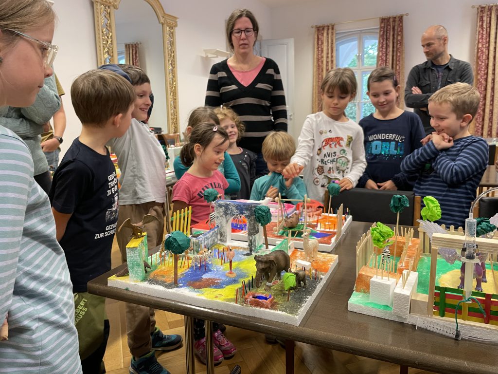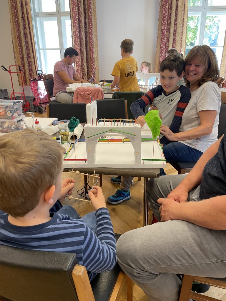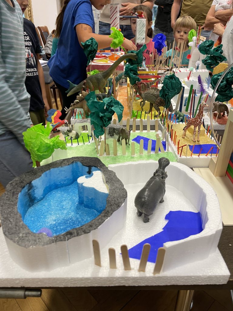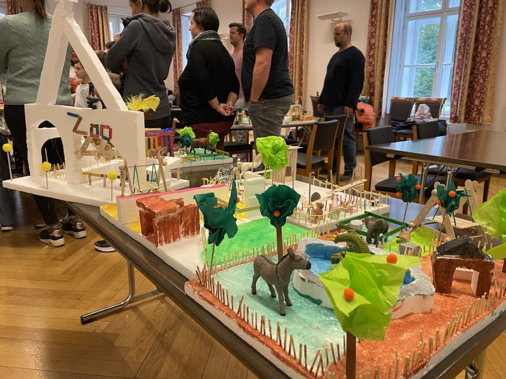 Zehn Familien mit insgesamt 16 Kindern nahmen teil und bauten in drei kurzweiligen Stunden gemeinsam fantasievolle Zoos. Dabei kamen unterschiedlichste Werkzeuge wie Bohrmaschinen, Styroporschneider, Stichsägen, Heißklebepistolen und viele weitere Materialien zum Einsatz. Der sichere und kreative Umgang mit diesen Werkzeugen stand ebenso im Mittelpunkt wie das gemeinsame Tüfteln und Bauen.